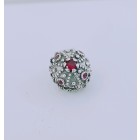 Bead Copuletta,argento 925,croce con pietra rossa,compatibile con i principali bracciali componibili